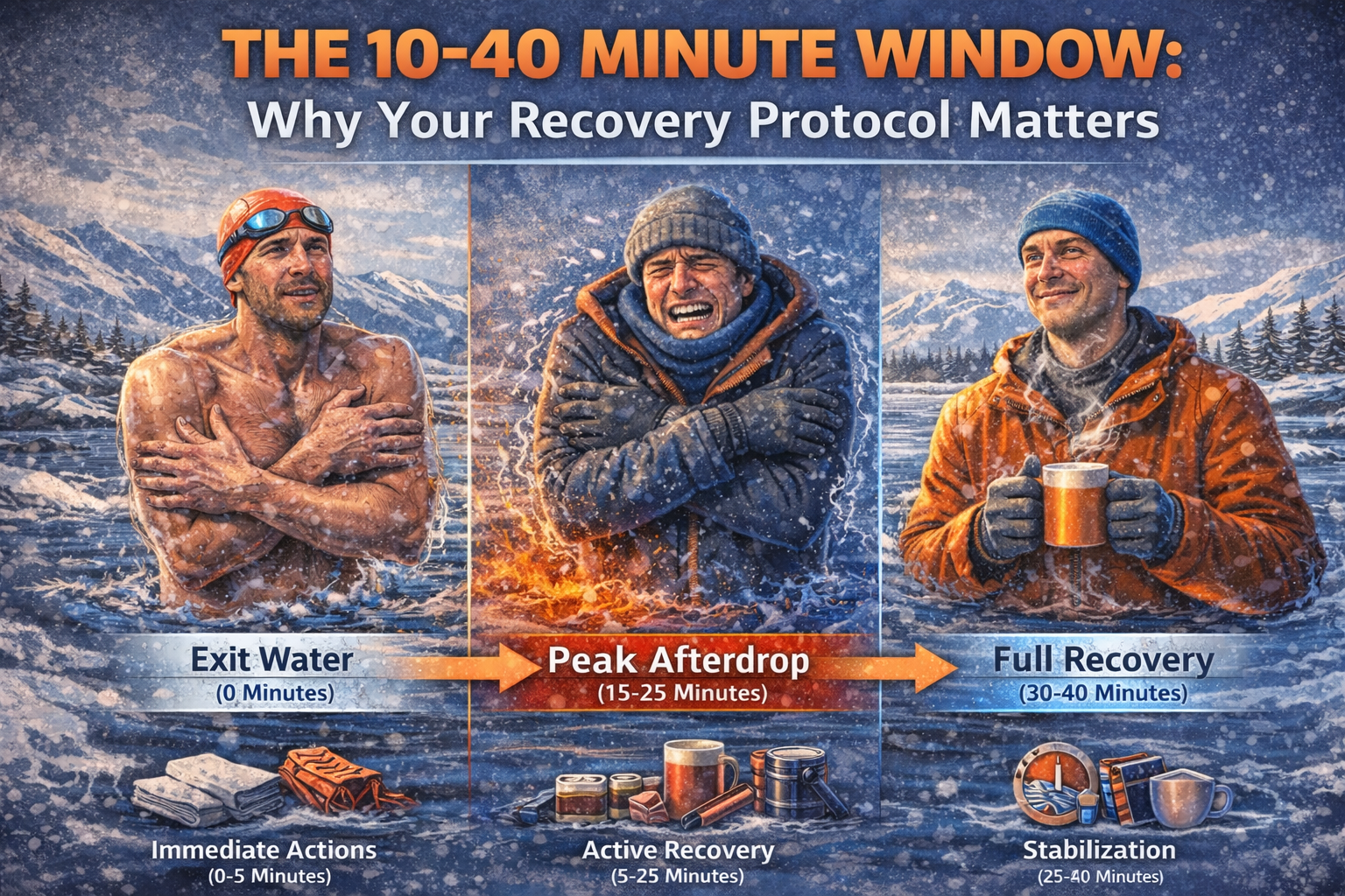 The 10-40 minute window isn’t just about physical recovery—it’s about respecting the physiological reality of cold water swimming.